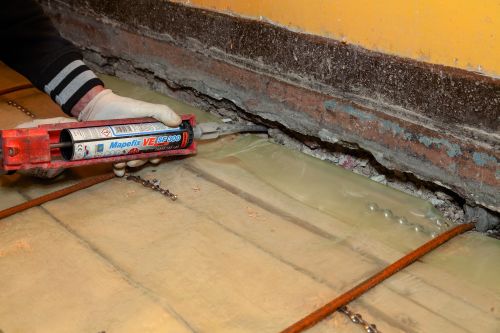 Szerkezeti megerősítés: Mapecure SRA , Mapefix VE SF, Mapei Steel Dry 316, Planitop HPC Floor T