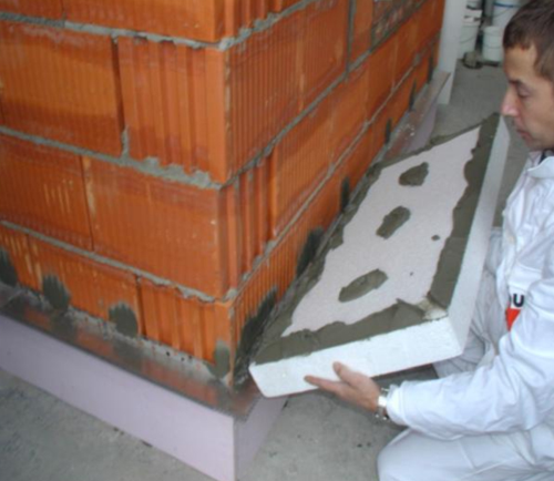 Jól jegyezzük meg: a hőszigetelő polisztirol táblákat mezőben három ragasztási ponton, továbbá az élek mentén (peremein) kell ragasztani, és a ragasztási felületnek legalább a tábla falhoz csatlakozó felületének 40 százalékát kell adnia.