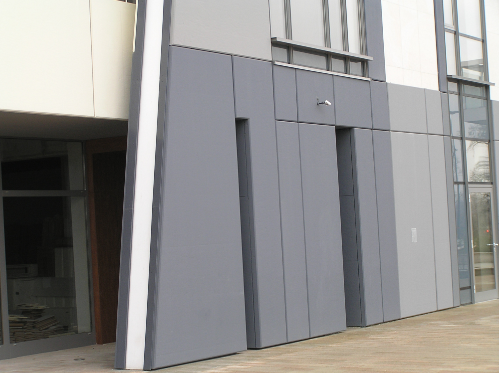 A látványbeton mint megjelenés és mint anyag legtöbbször az épületek homlokzatán fordul elő, a mögöttes szerkezeteket eltakaró és megvédő kéregpanelként. Ennek felszerelése pontos tervezést, gyártást és kivitelezést igényel. Az elvárások többsége nem látható felrögzítést fogalmaz meg, amely a panel felületi méretétől függően vagy az oldalába gyártott/fúrt lukba illeszkedő acélcsap segítségével történik (minimum 3 cm vastagság szükséges) vagy az elem hátuljába belegyártott két darab rögzítő szerelvény által valósul meg (minimum 7 cm vastagság szükséges). Az előbbi esetben 2,0–2,5 m2 felületű panelben kell gondolkodni, míg az utóbbi esetben akár 8–10 m2 felületű panel is szerelhető. Az elemek közötti távolság általában 8-10 mm, amelyet átszellőztetett homlokzat esetén nem szükséges kitölteni, de ha a csapadékvíznek a szerkezetbe való bejutását meg kell akadályozni, akkor tartósan rugalmas és UV álló anyagot kell használni. Mindkét felszerelési móddal szemben alapvető követelmény a háromirányú, fokozatmentes beállíthatóság, mert csak így érhető el, hogy az elem a homlokzati terveken meghatározott helyére kerüljön.
