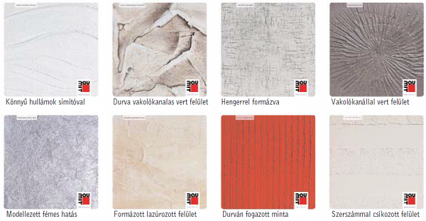 A Baumit CreativTop vakolatcsaládja számtalan felületi megjelenés kialakítására nyújt lehetőséget. Készíthetünk betonhatású, nyomott, átfésült, szivacsolt vagy bármilyen egyedi felületet. Ezeket a struktúrákat kombinálva a színekkel új dimenziók nyílnak a homlokzati hőszigetelő rendszerek felületi kialakításának terén. Akár fa- vagy mészkőburkolat hatást is elérhetünk, ha ezeket a struktúrákat homlokzatokon is használható színtartó lazúrokkal átfestjük. A költséges szerelt burkolat így kiváltható jóval egyszerűbben kivitelezhető megoldásra. Az eredmény magáért beszél.