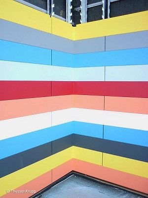 A Hoesch Planeel Siding homlokzatrendszer különleges megjelenésének titka új fejlesztésű, exkluzív matt-de-luxe színes bevonatában rejlik. A neves építész, Ralf Petersen a bevonat kilenc standard és három, ehhez a projekthez kifejlesztett egyedi színárnyalatának mindegyikét kombinálta egymással. A Planeel Siding homlokzatrendszerhez kifejlesztett matt bevonat elnyeli a környezet tükröződéseit, modern megjelenést létrehozva, és kiemelve a szálloda egyediségét.