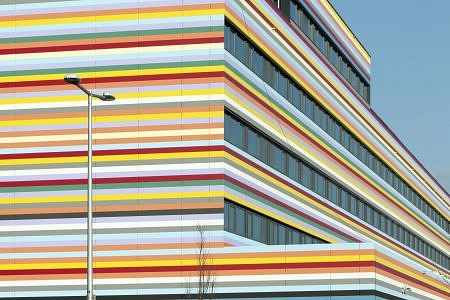 Még tartanak az építési munkálatok Európa legmodernebb repülőterén, a felújítás alattálló Berlin-Brandenburg Nemzetközi Repülőtéren (BBI). A szomszédos Hotel Berlin Airport azonban már most is kitűnik extravagáns homlokzatkialakításával: összesen 4 ezer négyzetméter Hoesch Planeel Siding borítja az épületet.