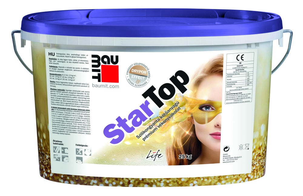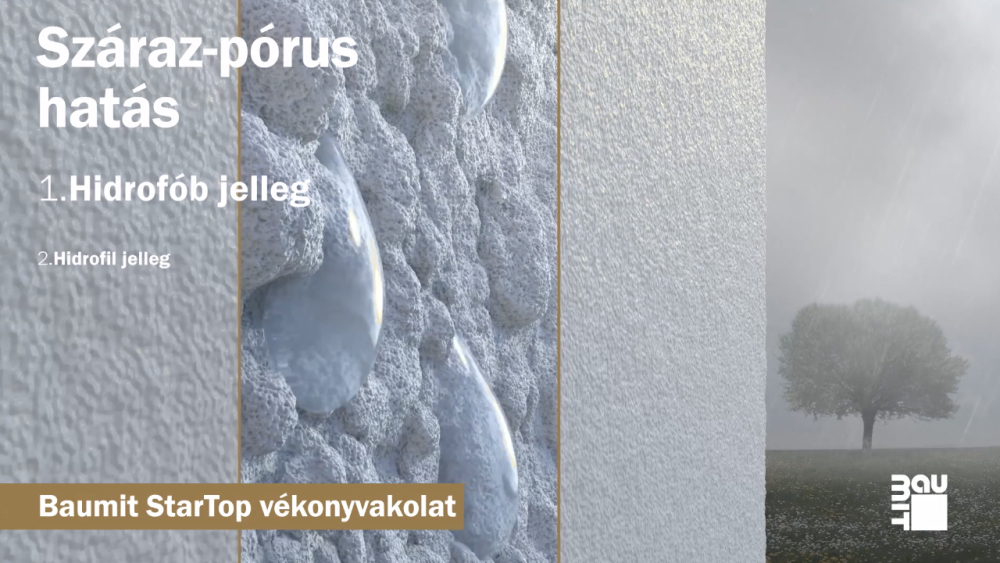 A Baumit StarTop vékonyvakolatát azoknak a problémáknak a megoldására fejlesztették ki, amelyek leginkább felelősek a vakolat korai elöregedéséért, azaz a pára és csapadék okozta terhelések enyhítésére.