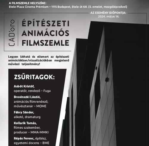 Kezdeményezésünk célja, hogy az építészeti animációkba, vizualizációkba fektetett művészeti teljesítmény láthatóvá és elismertté válhasson – ezt szolgálja a CAD’oro építészeti animációs, épületvizualizációs filmszemle.