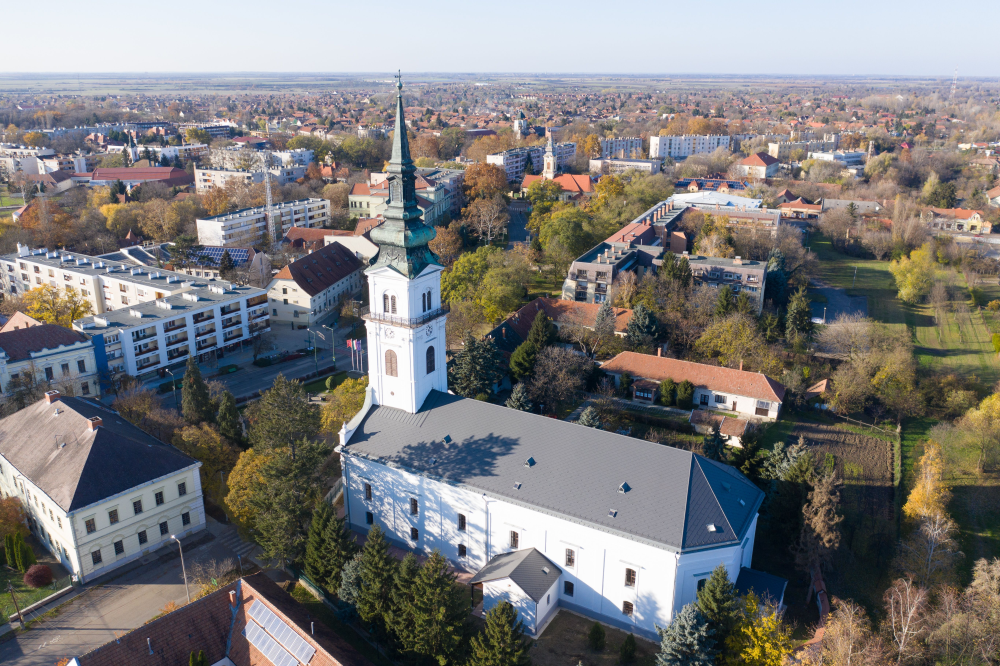 A békési bádogosmester a templom héjazatának felújítása során a Prefa 44×44-es rombusz fedőanyagát használta. A tető vízelvezetését fekvőeresz kialakításával oldották meg, amely fölé vonalmenti hófogás került. A kivitelezés minősége minden szerkezeti rész tekintetében elismerésre méltó. A fedési vonalak kiosztása pontos, a kiselemes fedés szegélyezési munkái és gerinckialakítása kiváló minőségben készültek el. Alapos, pontos, átgondolt munka. Az elkészült tető összképéből jól látszik, hogy a kivitelező a munka előkészítése során körültekintően járt el, nem spórolta ki a kifogástalan produktumhoz elengedhetetlen lépéseket.