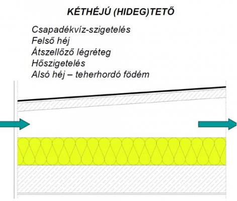 A kéthéjú hidegtető alsó héja a teherhordó födémszerkezetből és a rajta elhelyezett hőszigetelő rétegből áll. A fűtött térből kikerülő, rajtuk átjutó pára a fölöttük lévő légrésbe kerül, ahonnan átszellőztetéssel eltávolítják. A csapadékvíz elleni szigetelést a felső héjon, a hőszigeteléstől elválasztva helyezik el. A légrésnél úgy kell elosztani a levegőt be- és kivezető nyílásokat, hogy ne keletkezhessen szellőzetlen zug. Az attikákon elhelyezett szellőzőrácsok hatékonysága nagyon széles és hosszú tetőkön mindig kérdéses volt a tervezők számára.