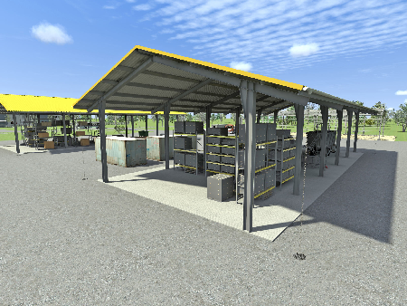 Fedett szín – egyszerű szerkezetű, acélvázas, csak trapézlemez tetőburkolattal fedett, oldalán nyitott csarnok