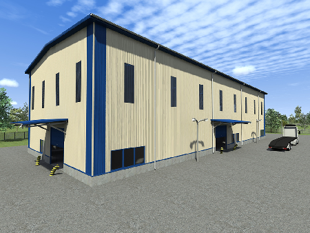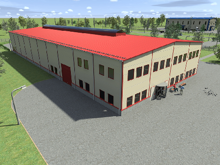 Gyártó mintacsarnok – hőszigetelt tető- és falpanellel burkolt, acél vázszerkezetes csarnoképület