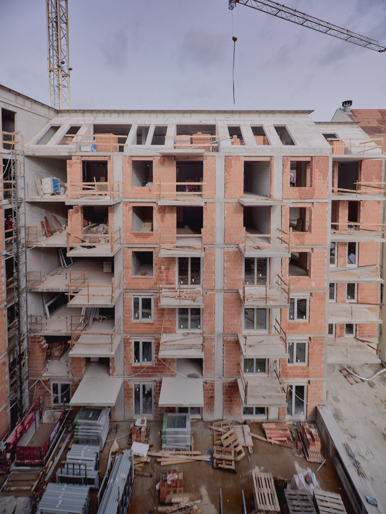 A depózásra sem volt lehetőség a közterületen, ezért azt is az épülő épületen belül oldották meg: a pinceszintet és – miután elkészült – a kívülről akadálymentesen megközelíthető földszintet használtákerre a célra. Az ilyen típusú kötöttségek miatt nagyon fontos volt az organizáció pontos betartása, de még ezzel együtt is, a kedvezőtlen felvonulási lehetőség és az alapozási nehézségek miatt a kivitelezés ideje egy átlagos, hasonló léptékű társasház építési idejét közel egy évvel haladta meg – tudtuk meg a beruházótól.