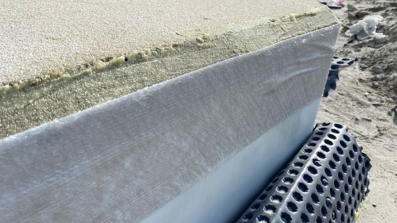 Ahhoz, hogy erre a problémára vízhatlan megoldást találjunk, szintén egy kiegészítő szalagot tudunk segítségül hívni. A csatlakozási vonalban elhelyezett MAPEPROOF FBT TAPE 600 szalag biztosítani tudja az eltérő technológiák vízhatlan felületfolytonosítását.
