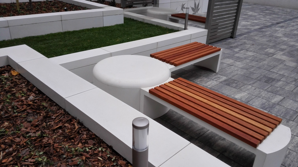 Korábban már bemutattuk a betont, amint falburkolatként vagy közlekedési esőbeálló formáját öltve tárja fel esztétikai szépségét, most pedig arra láthatunk példákat, hogy ez az erős, masszív anyag milyen finom rezdüléseket tud visszaadni egy művészi alkotásban, vagy mennyire meg tud felelni a modern tér-építészet igényeinek egy köztéri használati tárgy/bútor alakjába bújva.
