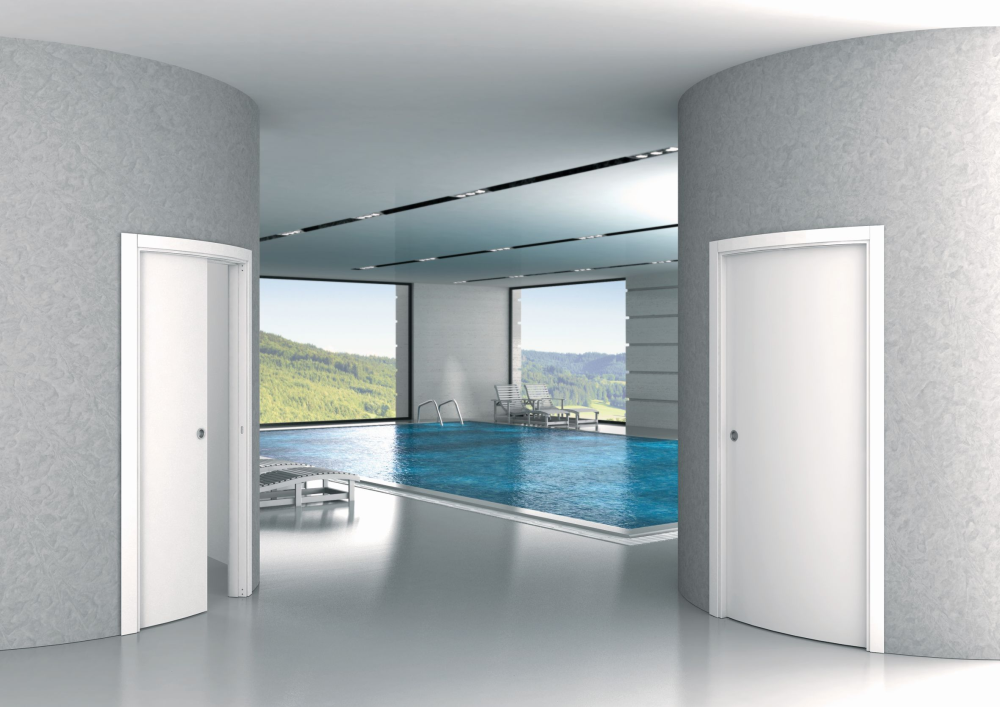 Íves belső falak alkalmazásával dinamikus belső terek hozhatók létre, azonban az íves falakba nehéz hagyományos módon elegáns ajtókat építeni. Erre is lehetőséget kínálnak a vakolt vagy gipszkarton falakba építhető Eclisse tolóajtók, melyek a funkcionalitás kárára kötött kompromisszumok nélküli, a rendelkezésre álló helyet észszerűen kihasználó látványos megoldásokat kínálnak.