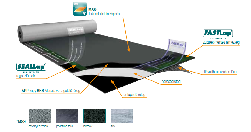 - Tiszta és esztétikus megoldás. Nincs bitumenkifolyás és szennyeződések a forró bitumen használatából adódóan. Az elkészült tető egyöntetű, homogén megjelenésű.