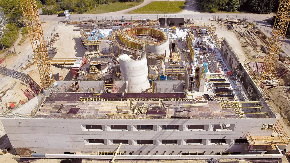 14 méter magas VARIO GT 24 elemek poligonális elrendezésben. A nagyméretű FinPly Maxi zsaluhéjak kiváló betonfelületet eredményeznek