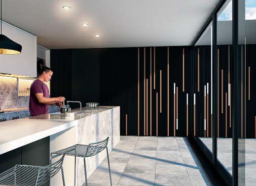 A fal felületképzésének lehetõségeit bővíti, hogy az alumíniumelemek látványos LED-szalagokkal is kombinálhatók