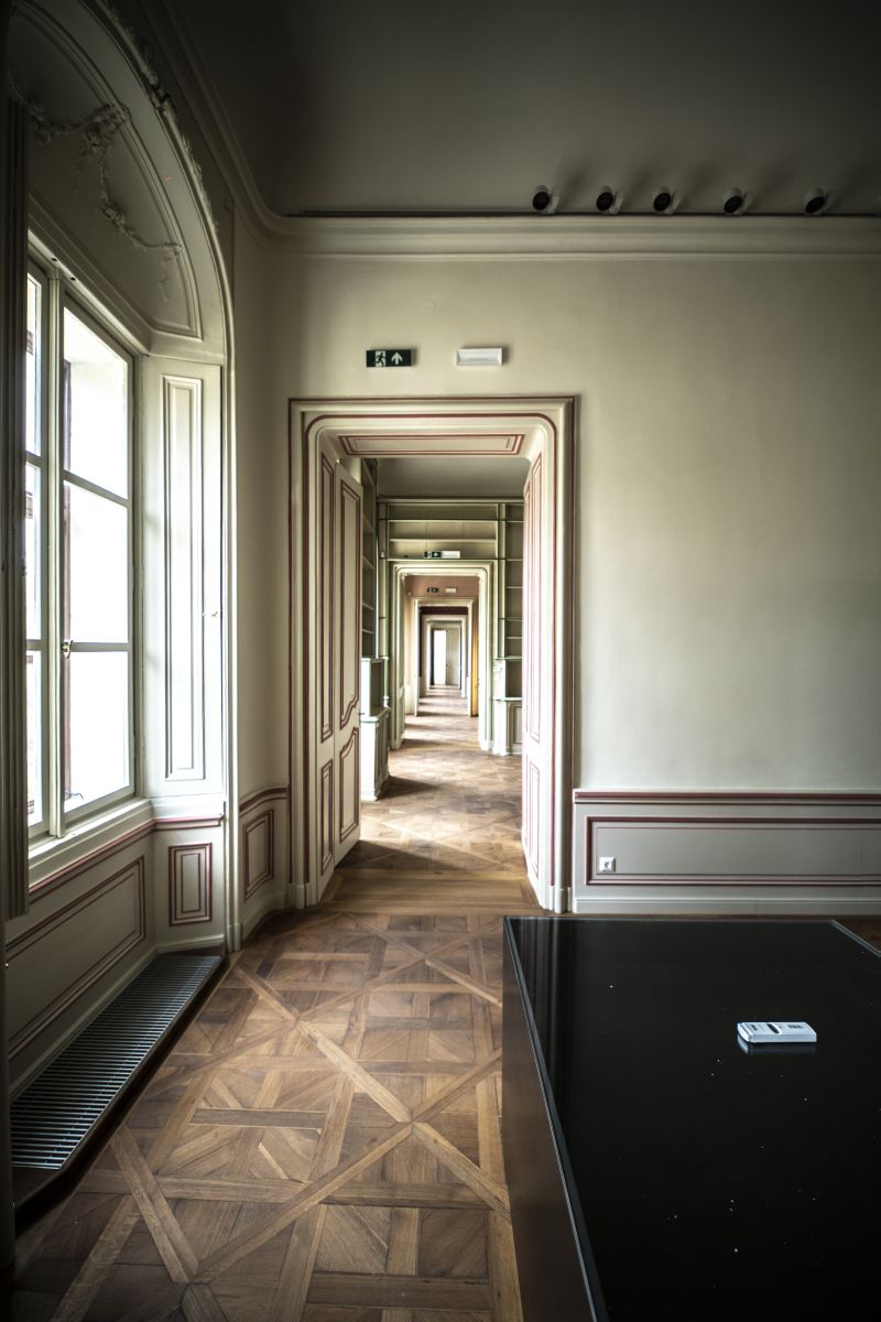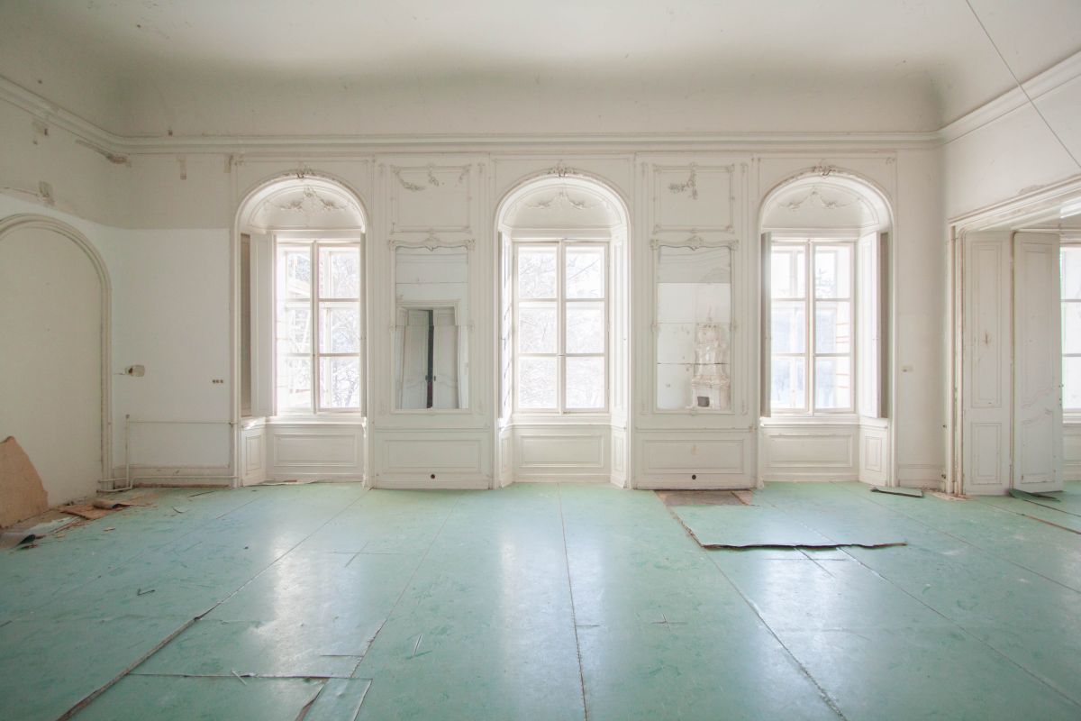 A Főépületben jelentős felületen megmaradt az eredeti barokk intarziás parketta, melyből körülbelül 500 négyzetméternyit sikerült is megmenteni. A többi helyen az eredeti minták alapján rekonstruált új parkettát raktak le