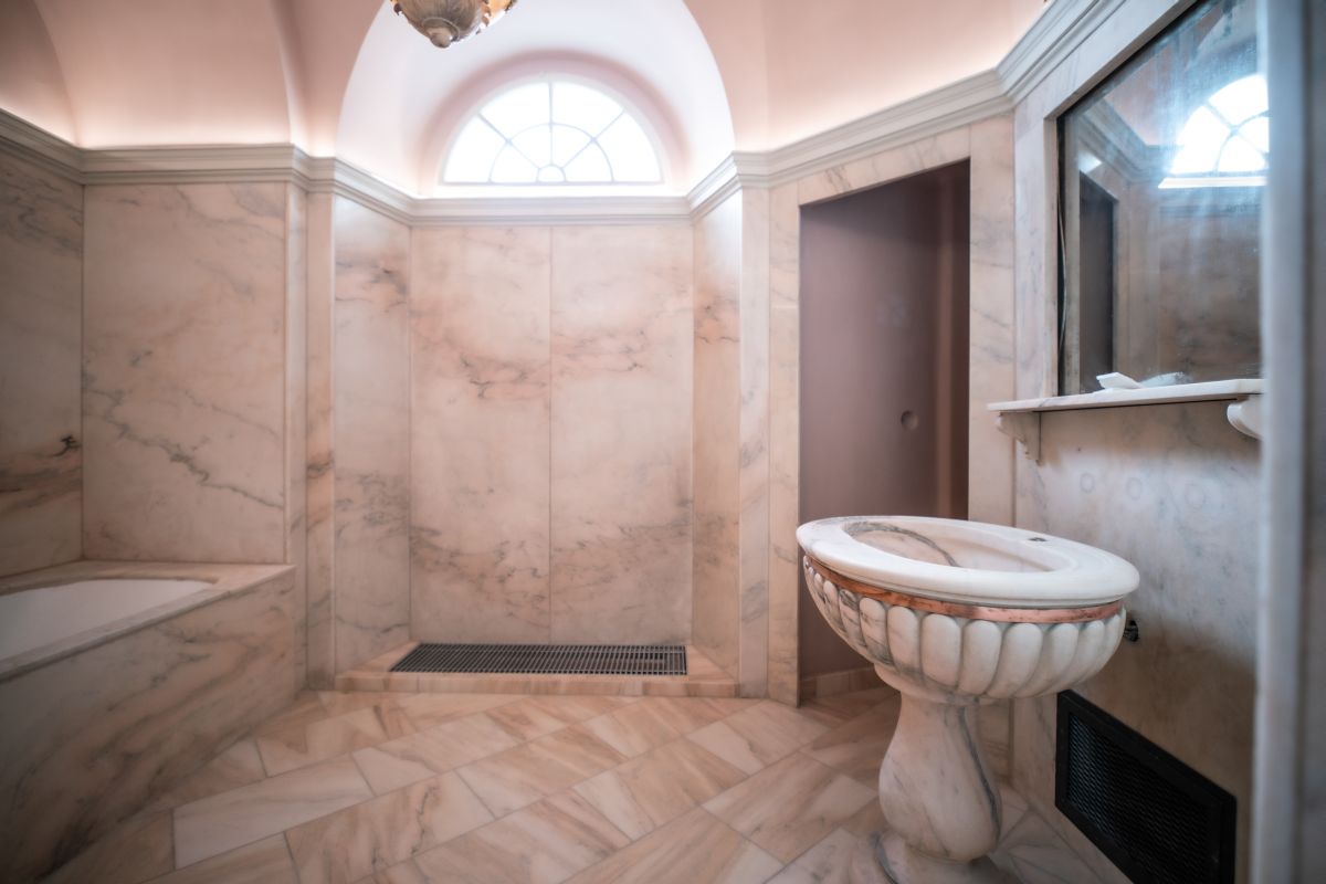 Különlegesség a főépület két – a 20. század elején készült – fürdőszobája is; az egyik berendezése márványból készült, a másikban az eredeti porcelánkád és lábas mosdó látható, és holland (delfti) csempék díszítik a falat.