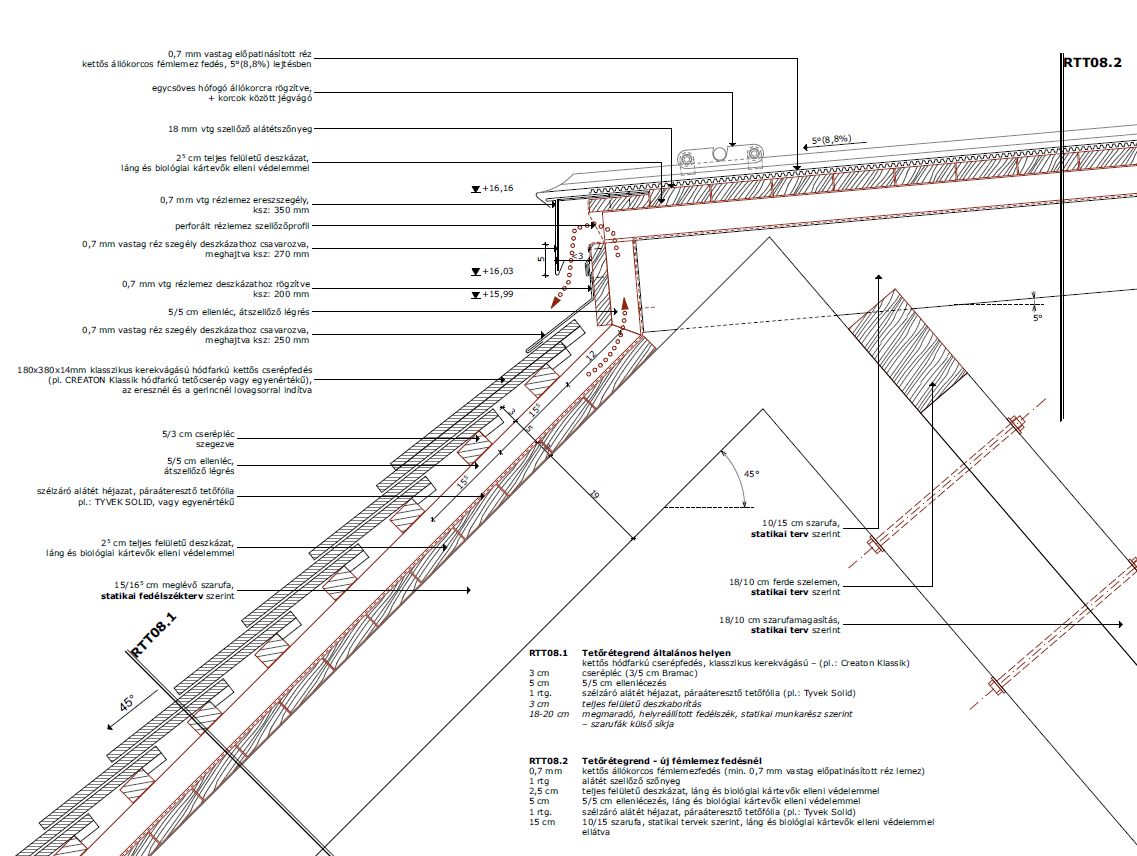 Az új bádogosszerkezetekhez következetesen rézlemez anyagot használtak