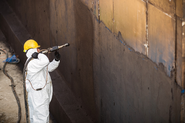 A 4.2.1.-es szellőzőgépház szórt szigetelését a SpecTech Kft. partnerünk Purtop System poliurea (polikarbamid) alapú vízszigetelési rendszerrel készítette. Ez a rendszer nemcsak gyors és hatékony, de rendkívül ellenálló vízszigetelési megoldás is. Olyan előnyökkel bír, mint a teljes felületi tapadás, magas szakító szilárdság és szakadási nyúlás (~400%), ütésállóság, illetve viszonylagosan jó páraáteresztő képesség (SD=1,9 m).