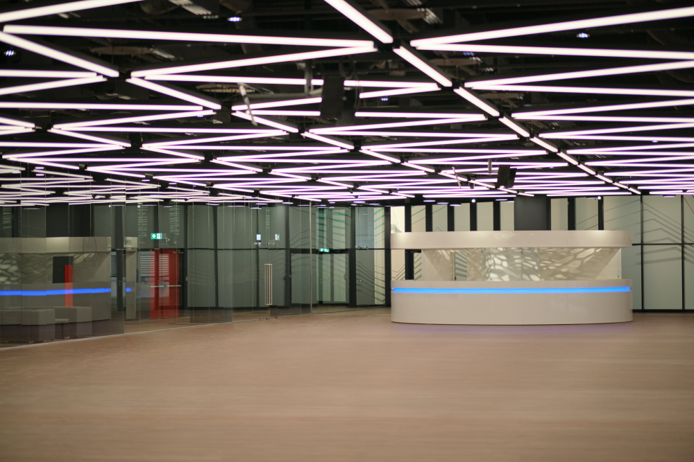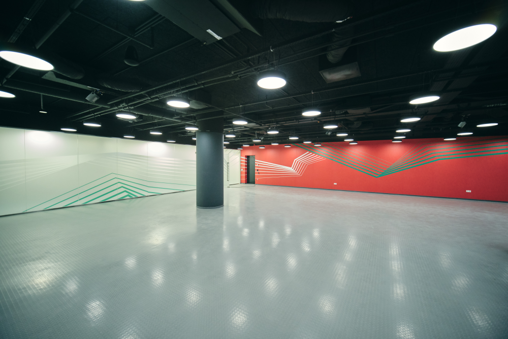 Az épületben található burkolt helyiségekben (vizesblokkok, zuhanyzók, kiskonyha, öltözők) mintegy 42.000 m2-en a hidegburkolatok szigetelését, ragasztását és fugázását kivitelező partnereink (Stukkó Kft., Ratskó Bau Kft. és a Dominó Kft.) a Mapei termékeivel végezték.