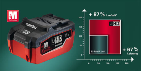 Mint az összes Metabo akkus megoldást, a cég az új LiHD akkuegységeket is a jól bevált Ultra M technológia alapján fejlesztette ki. Ez tökéletes együttműködést garantál a gép, az akkuegység és a töltőkészülék között. Az Air Cooled töltési technológiának köszönhetően az LiHD akkuk rendkívül gyorsan feltöltődnek, az aktuális töltöttségi állapot pedig bármikor leolvasható a kapacitáskijelzőn. A Metabo az LiHD akkucsomagokra ugyanúgy három év garanciát nyújt, mint az összes eddigi akkucsomagra. Az új akkuk LiHD 6,2 Ah-val vagy LiHD 5,5 Ah-val kaphatók.