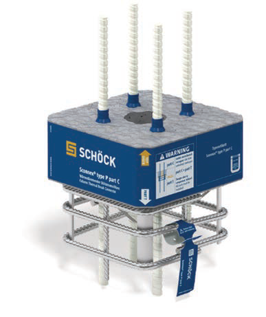 Tekintsük át a Sconnex termékcsalád tagjait! A Sconnex W típus egy fal-hőhídmegszakító, amely a statikus tervező által meghatározott kiosztásban építendő be. Az elemek elhelyezhetők a vasbeton fal alján, tehát a födém felett, vagy a fal tetején, a födém alatt is. Ez attól függ, hogy hol kell az alulról hűlő födém hőszigetelési vonalát vezetni. A korábbi Isokorb termékekhez hasonlóan Neopor hőszigetelő testtel, UHPC (speciális, acélhaj-erősített beton) nyomóbetéttel és átmenő betonacél nyíró vasalással rendelkezik. A Sconnex P típus pillérfejbe kerülő hőhídmegszakító könnyűbeton maggal és átmenő Combar (üvegszál-műgyanta kompozitanyag) betonacél-helyettesítő rudakkal rendelkezik. Ennél a terméknél idén több újítás is várható: érkezik a pillér alsó övébe elhelyezhető elem (Sconnex P-U) és megkezdődik a kör keresztmetszetű pillérek Sconnex szerelvényeinek gyártása is.