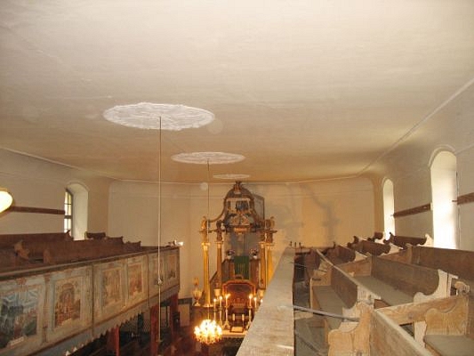 1. kép. Az értékes templombelső a karzat festett mellvédjével