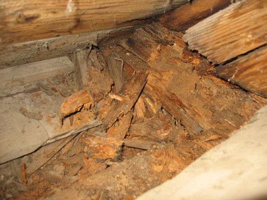 - Néhány súlyosabb biológiai károsodás szerkezeti problémát is okozott, így pl. az egyik főállás talpcsomópontjánál (2. kép), két helyen pedig a derékszelemennél. Ezek is mindenképpen kiváltást, szakaszcserét igényeltek.