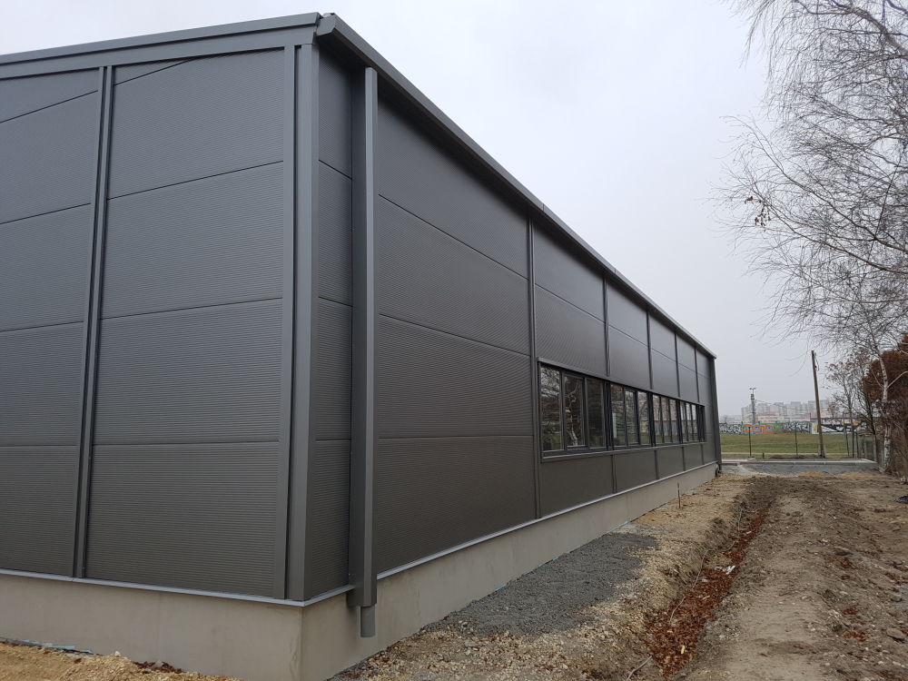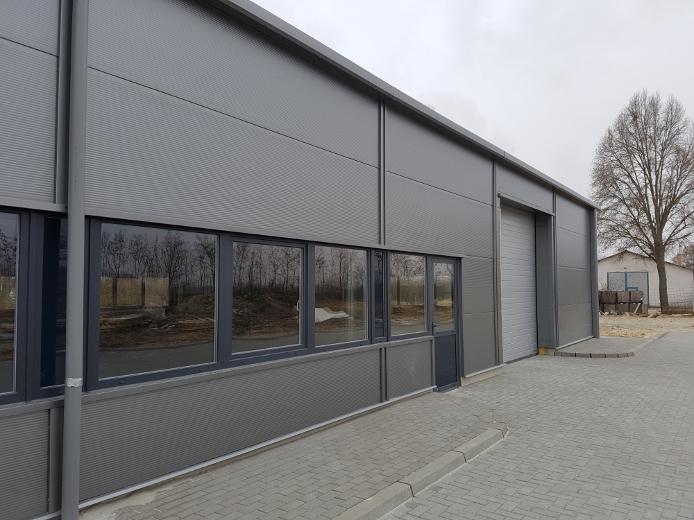 A csarnok minden pontján nyomon követhető, hogy odafigyeltek a részletekre. Az autószereléshez fontos a természetes fény, ezért az acélcsarnok oldalfalaira 40 darab ablak került, a járművek mozgatását pedig egy nagy ipari kapu segíti. A tágas csarnok alapterülete 15×25 méter, gerincmagassága 5,4 méter. Mivel az épületnek télen-nyáron működnie kell, a csarnok kiváló minőségű PVDF bevonatú, kiemelten UV-álló, U=0,18 W/m2 hőátbocsátási tényezőjű szendvicspanelekkel készült.