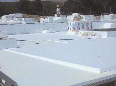 - Lejtést adó szerkezeti réteg készíthető polisztirolgyöngy-adalékos könnyűbetonból is (Austrotherm AT-KA), ami egyrészt csökkenti a szerkezeti elemekre jutó terheket, másrészt javítja a rétegrend hőszigetelő képességét, de még mindig problémát okozhat a helyszíni kialakítás és a nedves technológia alkalmazása.