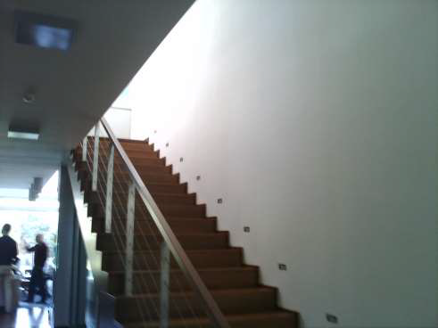 • a lépcsőszélen a levegő átcsordulásának meggátlása, azaz a lépcsőkar és a galériafödém közötti függőleges háromszögnyílás lezárása üvegfallal. Így ugyanis a levegő hosszabb úton jutna le a galériából az előszobába, és esetleg a lépcső alján egy padlóba beépített elektromos hősugárzóval megakadályozható lenne a visszafordulása a nappali felé.
