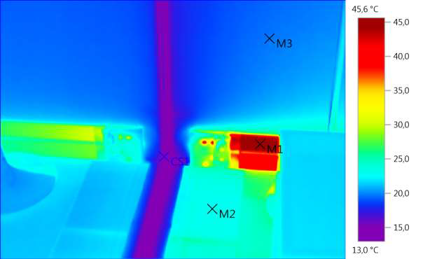 M2: 23,0 °C, M3: 19,6 °C, CS1: 13,0 °C