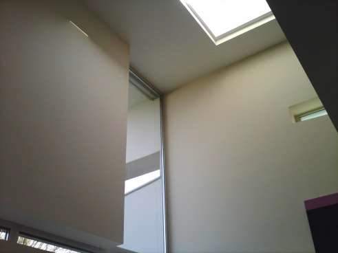 A belső udvar felőli üvegezés felső pozitív sarokcsatlakozása a nappali felől