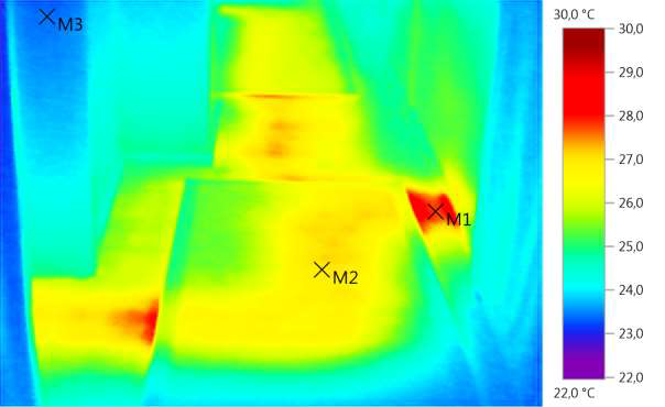 M2: 26,9 °C, M3: 23,4 °C