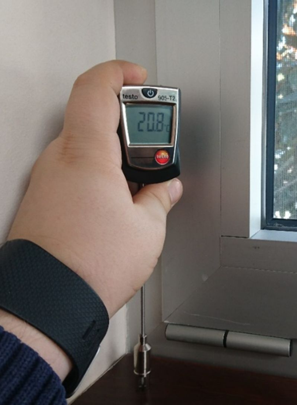Az energetikai méréseket prof. dr. Tóth Elek igazságügyi szakértő és dr. Nagy Balázs egyetemi adjunktus végezte. Megmérték a hőmérsékleteket, és azt is megállapították, hogy az eltérés a hőkamerás mérés és a hőmérsékletmérés között +1 K, azaz minimális. A nappaliban a kanapé sarkánál tarkómagasságban 24-24,8 °C fok, a galérián a korlát magasságában a sarkon 25-26 °C fok mérhető, a többi hőmérsékleti adat szerepel a Hőmérséklet–idő-diagram helyiségekben, felületeken című ábrán.