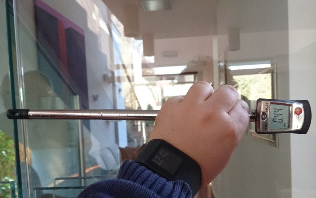 Légáramlás mérése csukott üvegajtó esetén