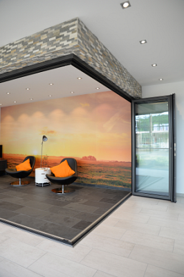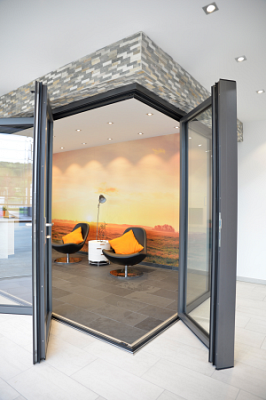 A Solarlux újdonságának lényege, hogy a sarkon át is teljes nyitottságot biztosít a kihajtható sarokoszlop révén, ha két, egymással szomszédos falon lévő harmonikaszerkezetet szeretnénk kialakítani, és ezzel a homlokzatokat teljes mértékben nyithatóvá tenni.