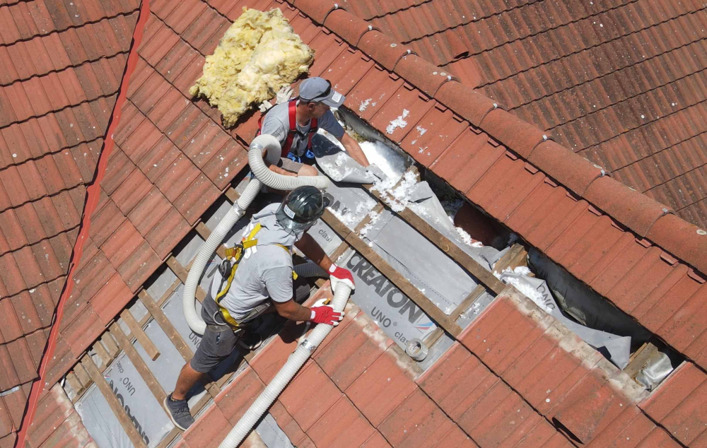 A Velencei-tó melletti családi ház felújítását a Silver Insulation System Kft. nyerte meg. A feladat összetettnek minősült, mivel a hőszigetelő anyag befújása számos egyéb munkálat elvégzését is megkövetelte. A tulajdonos számára kényelmesen, a házon kívülről dolgozott a csapat, így a tetőtér belső oldali megbontására nem volt szükség. A kivitelezés első lépése a cserépfedés és az alátétfólia bontása volt. Ezt követte az új, páraáteresztő alátétfólia és párazáró fólia beépítése, valamint sor került a lécezés és a cserép visszahelyezésére.