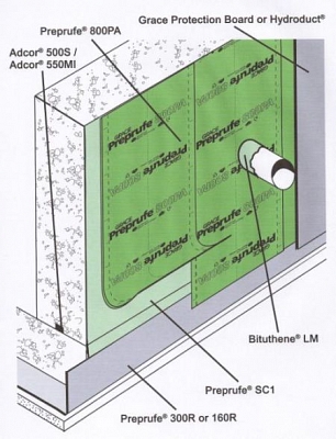 A cementes és fém felületekre helyezhető Preprufe 800PA kétféle típusban kapható: a Preprufe 800PA +5 és +40 °C, a Preprufe 800PA LT pedig -5 és +20 °C között alkalmazható. A sem vizet, sem párát át nem eresztő lemez teljes felületen tapad, kizárva a vízvándorlást és vízszivárgást a szigetelés és az aljzatfelület között. Rugalmasságából adódóan felveszi a dilatációs mozgásokat, áthidalja a beton zsugorodásból adódó repedéseit, illetve jobban fedi a felületi egyenetlenségeket.