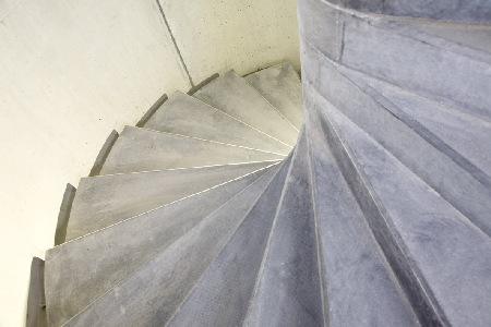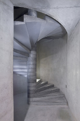 Külön érdekessége az elkészült rekonstrukciónak a csaknem nyolc méter szintkülönbséget áthidaló csigalépcső, amit konzolosan vasalt StyleCrete® betonból készült, előre gyártott lépcsőfokokból szereltek össze az Argomex munkatársai.
