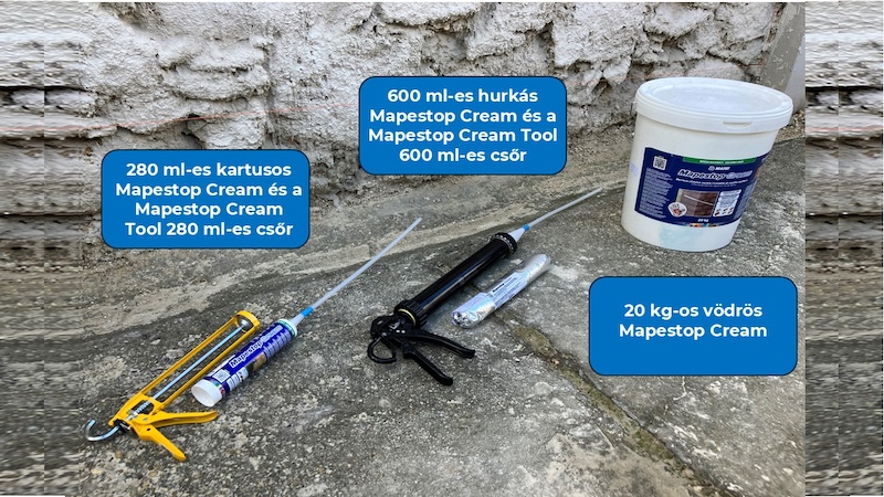 A Mapei kétlépéses megoldása: a Mapestop Cream krémes állagú injektáló anyag és a Poromap szárítóvakolat-rendszer együttes használata, mely hatékonyan csökkenti a falak nedvességtartalmát, megakadályozza a további károsodást és biztosítja a hosszú távú védelmet.