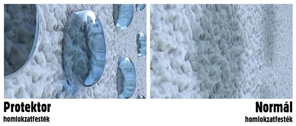 A Protektor hőszigetelő bevonat teljes mértékben vízlepergető, és szerves összetevőket nem tartalmaz, így teljes mértékben algamentes felületet tud biztosítani az épületek homlokzatán.