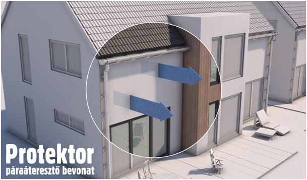 A Protektor bevonat diffúzióképes (pontatlanul: légzőképes). Nem akadályozza, hogy a falban lévő nedvesség eltávozzon a bevonatrétegen keresztül.