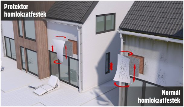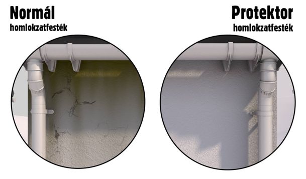 A Protektor bevonat vízlepergető tulajdonságának köszönhetően megakadályozza, hogy a homlokzat átnedvesedjen, így a hatékonyan elejét veszik a homlokzat kizöldülésének. A felület nem nedvesedik át, így megvédi a falat attól, hogy a nedvesség kárt tegyen benne. Nem fog berepedezni, így a kevesebb nedvesség miatt nem csökken a hőszigetelő képessége.