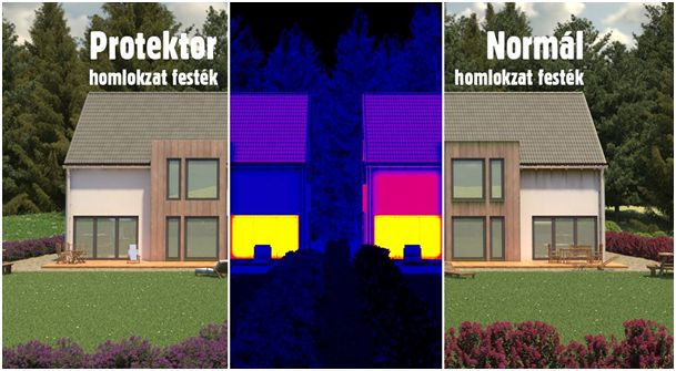 Hőkamerás felvételen egyértelmű, hogy a Protektor bevonattal ellátott homlokzat alacsonyabb hőmérsékletű, azaz kékebb, mint a hagyományos falfestékkel ellátott falszerkezet. A Protektor kerámia tartamú bevonat hatékonyan veri vissza a hőhullámokat.