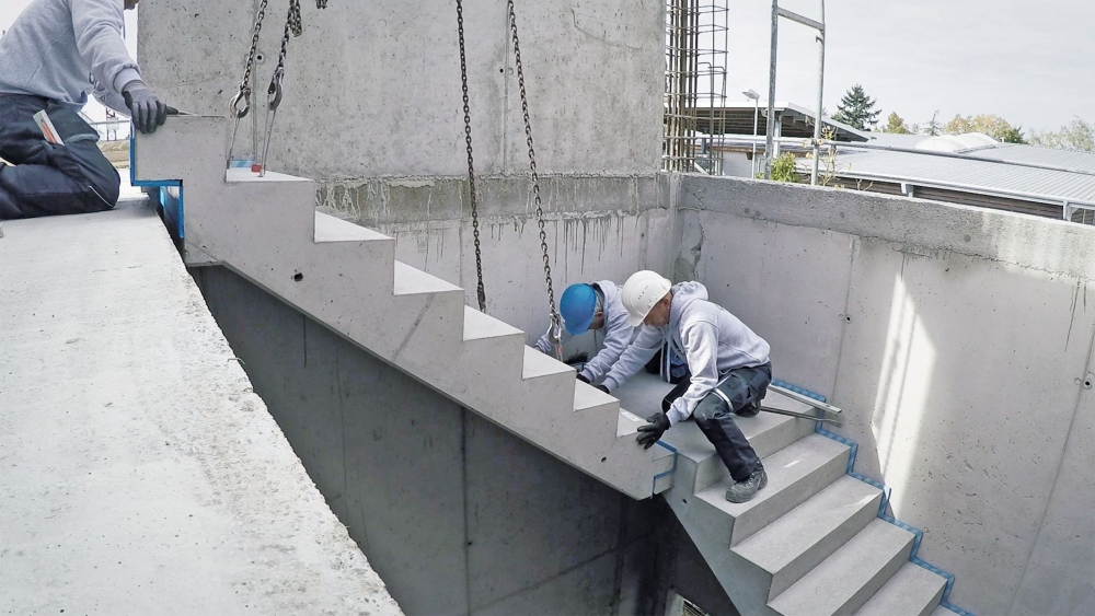 A Schöck cég kifejezetten vasbeton lépcsőkhöz fejlesztette ki Tronsole nevű lépcsőházi lépéshang-szigetelő rendszerét, mely szakszerűen kivitelezve könnyedén túlteljesíti az épületakusztikai követelményértékeket. A különféle szerelvények és alátétlemezek gondoskodnak a lépcsőkarok és pihenők épületről történő hangtechnikai leválasztásáról.
