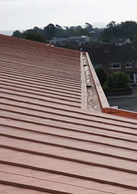 Rézlemez helyett rézhatású festékkel ellátott vízszigetelés