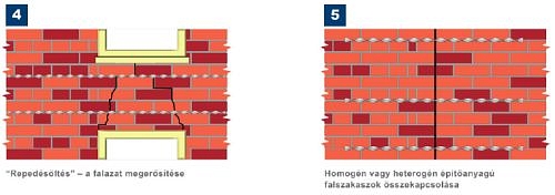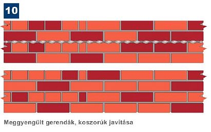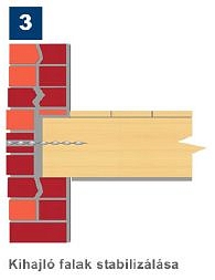 - rugalmas kapcsolat az elváló falrészek között (nem merev, helyi megoldás);