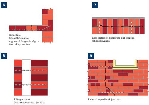 A falazatok, boltozatok, réteges falak, tetőszerkezetek, autópálya hidak, műemlék hídszerkezetek és épületek, könnyűszerkezetes épületek stb. megerősítésére alkalmas Brutt Saver rendszert Angliában fejlesztették ki, ahol már több évtizede sikerrel alkalmazzák. A rendszer alapelemei a különleges spirál alakú, ausztenites korrózióálló acélból, szabadalmaztatott gyártási eljárással készült spirálok és kötőelemek. Ezek falba, kőbe, horonyba vagy furatba való rögzítésére tixotróp, nem zsugorodó, injektálható, kétkomponensű, cementalapú ragasztó szolgál.