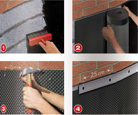 Az oldalirányban csatlakozó Fondaline lemezek átfedése legalább 200 mm vagy hét „bemélyedés” legyen. A Fondaline felületszivárgó lemezt általában a domború – fekete színű – oldalával kell a felületre helyezni. A fal anyagától függően hagyományos szeggel vagy dübellel rögzíthető. Általános körülmények között a Fondaline felületszivárgó 5 méter mélységig használható.